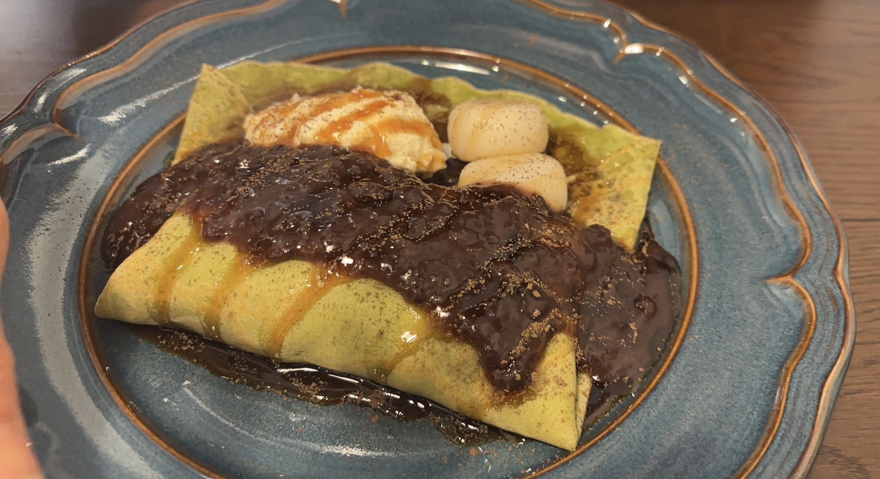 今回は15時頃行ったので、「春の和クレープ」と「ほうじ茶バスクチーズケーキ」を母とシェアしました。